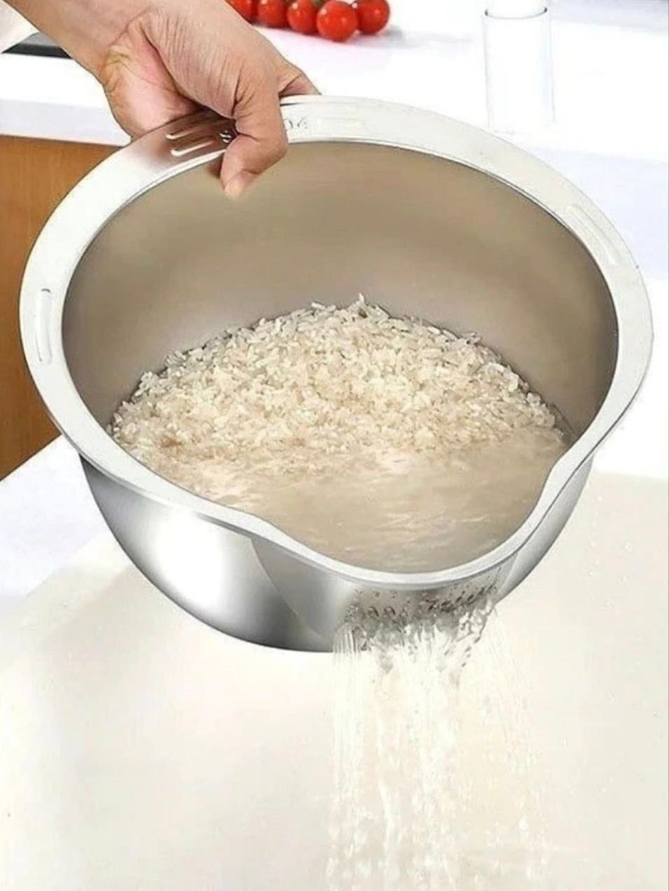 شستشو و آبکشی برنج وسبزیجات